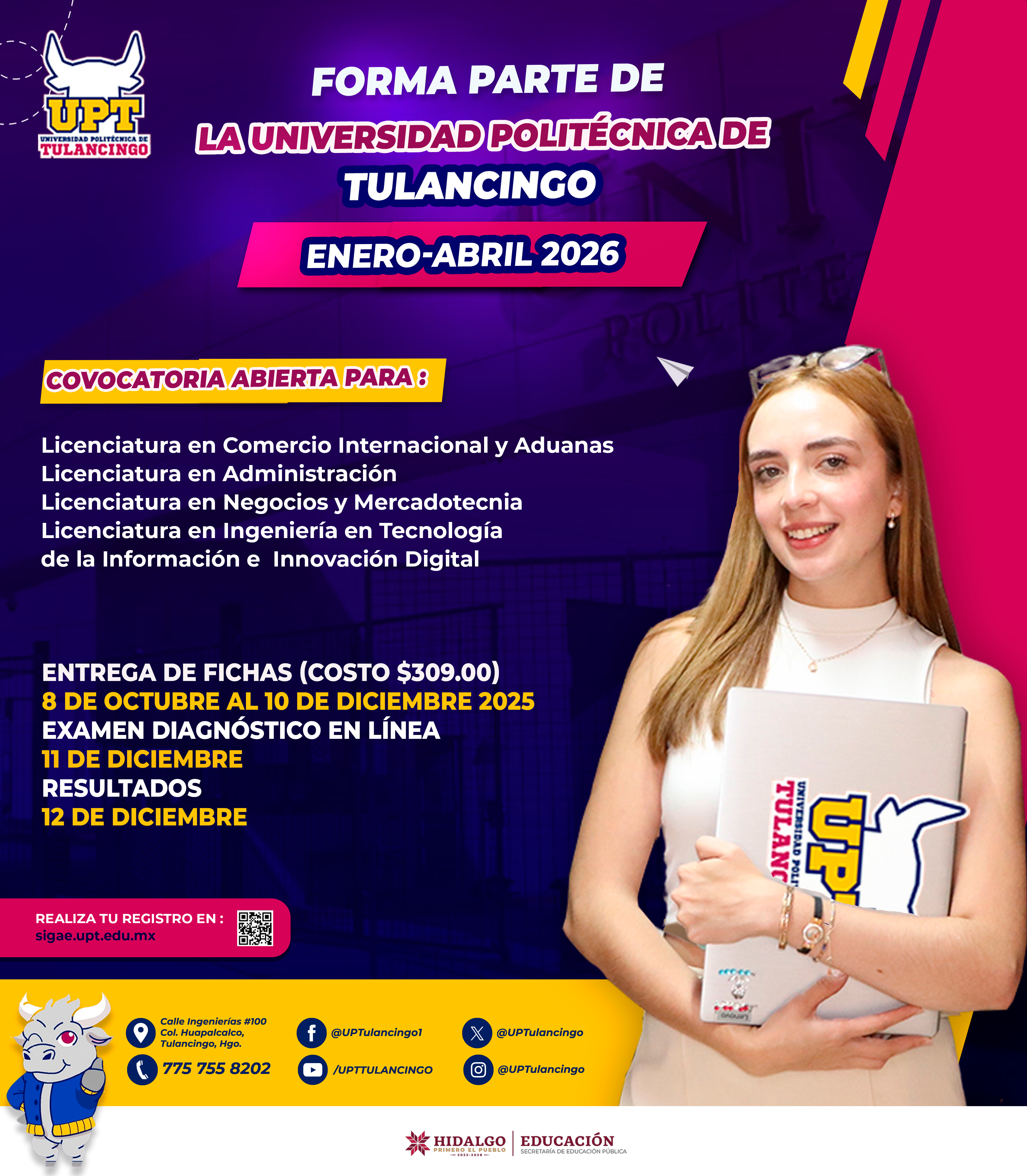 Tu navegador no soporta HTML5 Video Líderes construyendo su futuro. Líderes construyendo su futuro. Universidad Politécnica de Tulancingo 1 2 3 1 2 3 4 1 2 1 2 1 2 1 2 Previous Next Comunicación Social Conoce más Biblioteca Conoce más Universidad Politécnica de Tulancingo